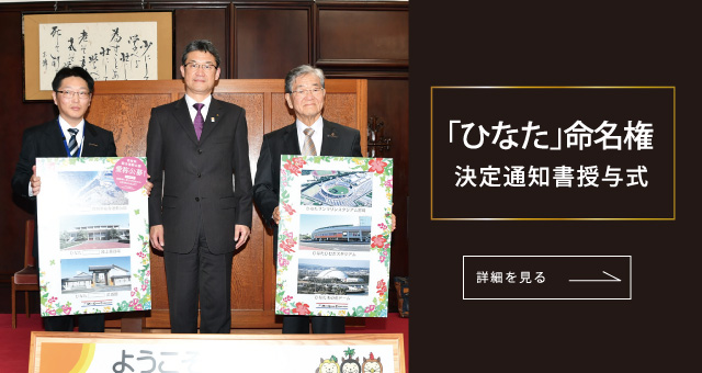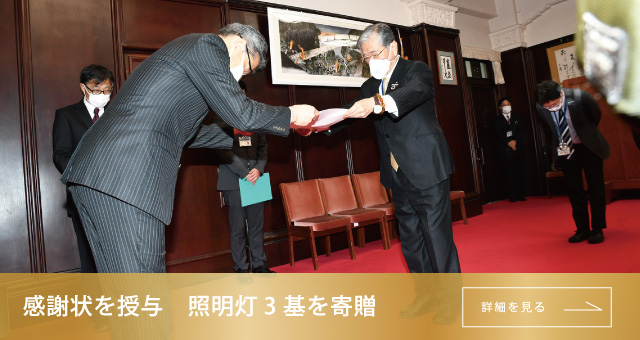 ひなた宮崎県総合運動公園のネーミングライツ・スポンサーである米良電機産業(株)は、照明灯3基を公園内に寄贈したとして、河野俊嗣宮崎県知事様から感謝状をいただきました。