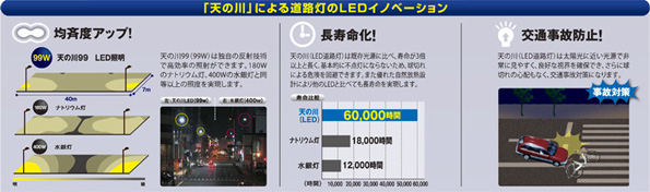 紫外線が少ないため室内温度への影響が軽減され、冷房などの使用電力削減、CO2削減につながります。また、環境に有害な水銀を含まず一般廃棄物として処理できるため、産業廃棄物を削減できます。