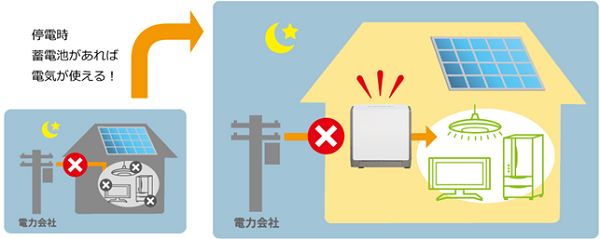 太陽光発電・エネファームでつくった電気や安い深夜電力を蓄えて停電などの非常時に備える事ができます。また、余った電気は電力会社に売電することが可能です。