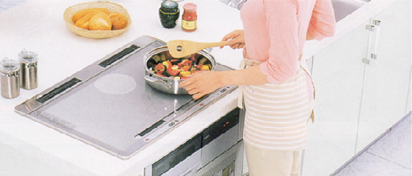 IHは輻射熱が少なく、ムッとくる熱気も抑えられるので、夏の調理も快適にできます。また、立ち消えの心配が無いので近くで扇風機も使えます。