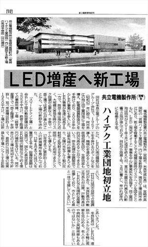 2月27日付け宮崎日日新聞第3面に共立電機製作所の立地調印式の記事が掲載されました。