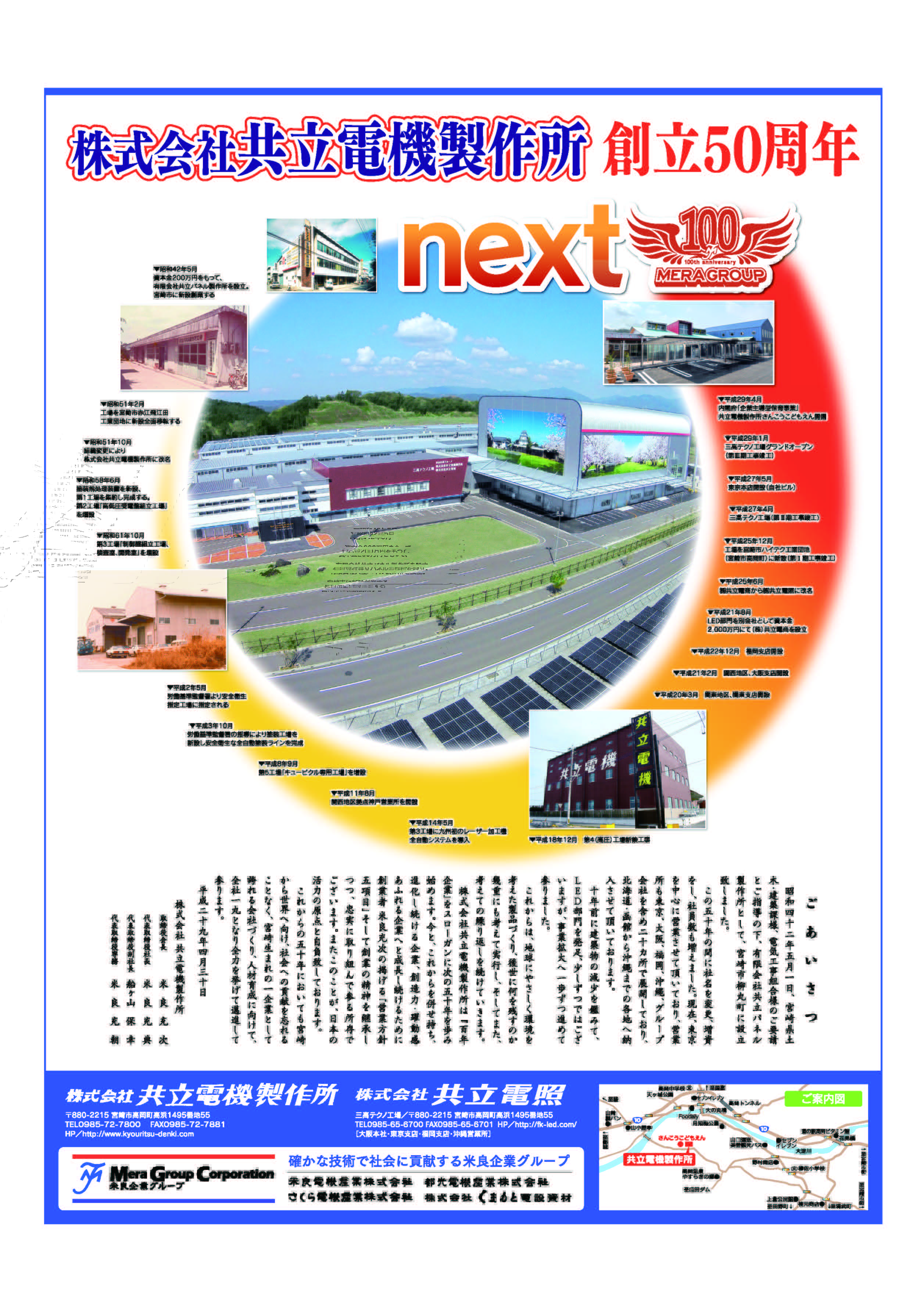 4月30日(日)付け宮崎日日新聞4面に共立電機製作所創業50周年の記念広告が掲載されました。