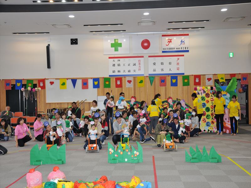 園児約30名ほどが参加、ご父兄も100名以上の方々が参加していただき、徒競走、ダンス、玉入れ、綱引きなど園児を中心にご父兄の皆さまが参加できる運動会となり、大いに盛り上がりました。