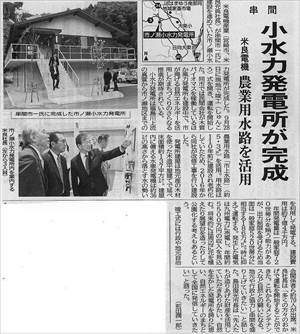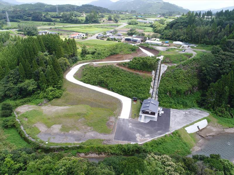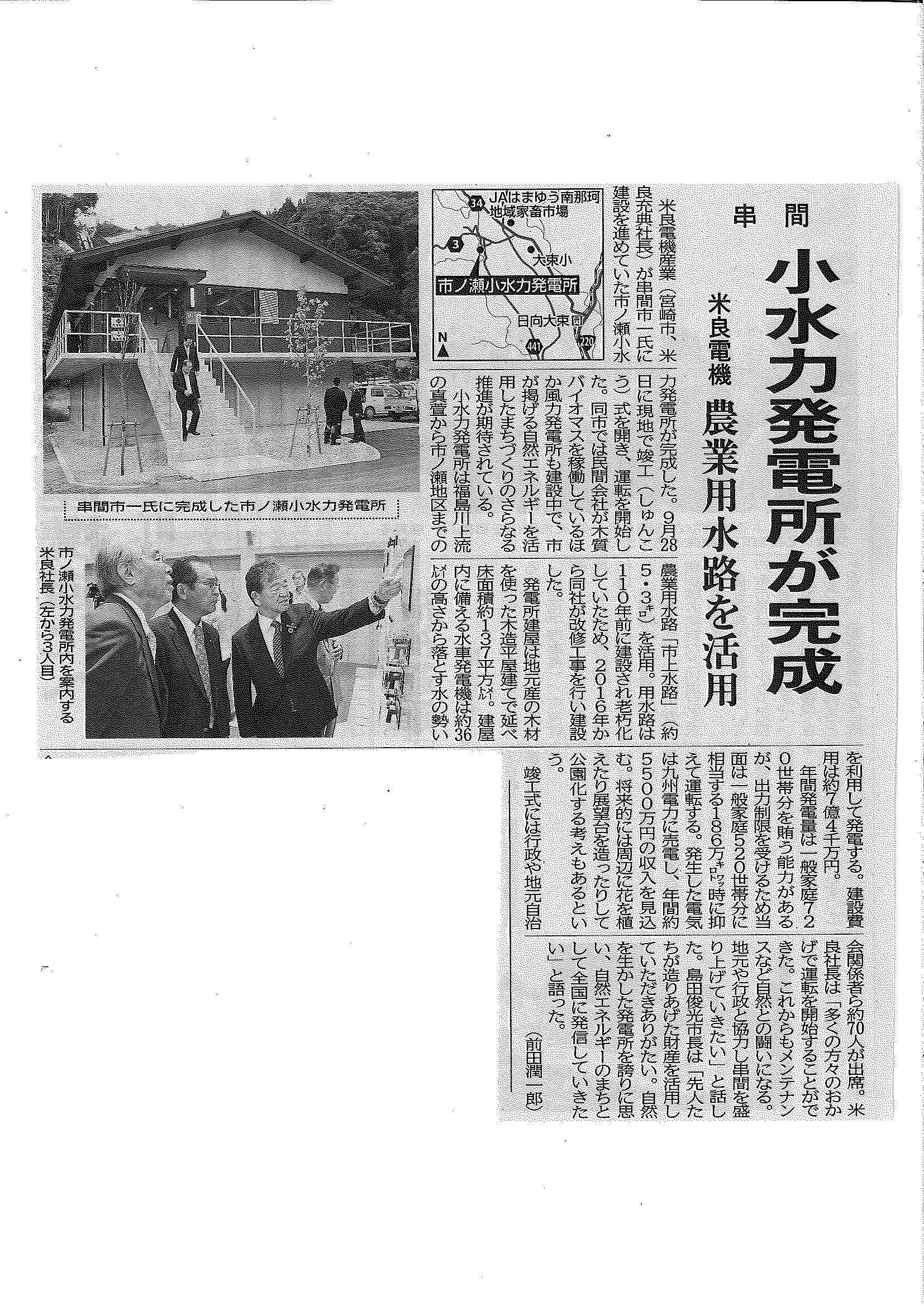 米良電機産業(株)が計画を進め、(株)ハイドロクリーン21が事業代行をしました串間市内の小水力発電所が、このほど完成いたしました。