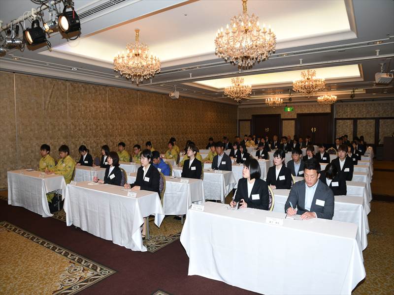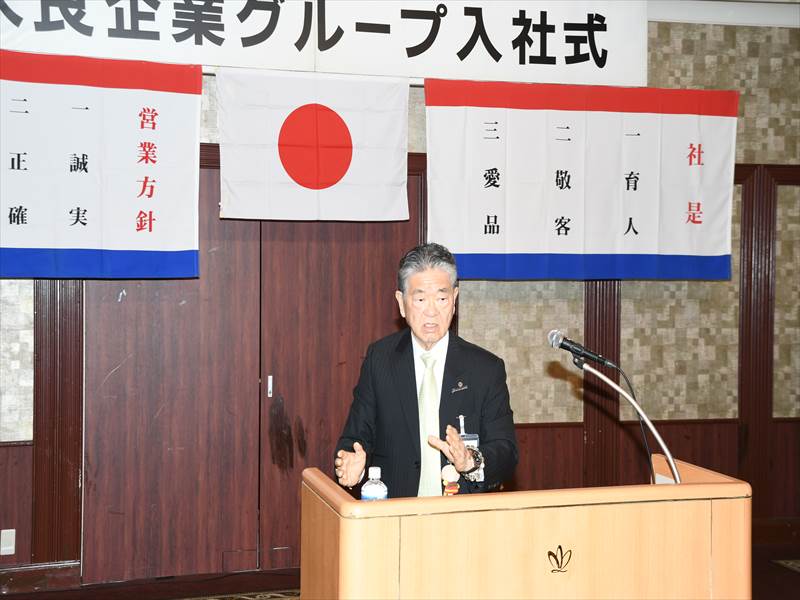 米良社長は「今から企業に就職することで、本当の意味で親元を離れ、自立することになります。甘えをなくし、仕事を着実に覚えながら、健康に十分気を付け業務を遂行していってください。我々はあなた方に大きな期待をしています」と挨拶をしました。