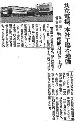 5月18日(月)付け日刊工業新聞に三高テクノ工場第5期工事の記事が掲載されました。