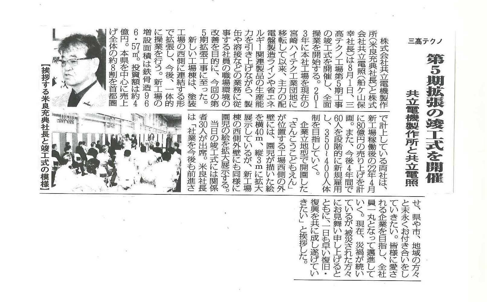 8月6日(木)付17面建設新聞に竣工式の記事が掲載されました。