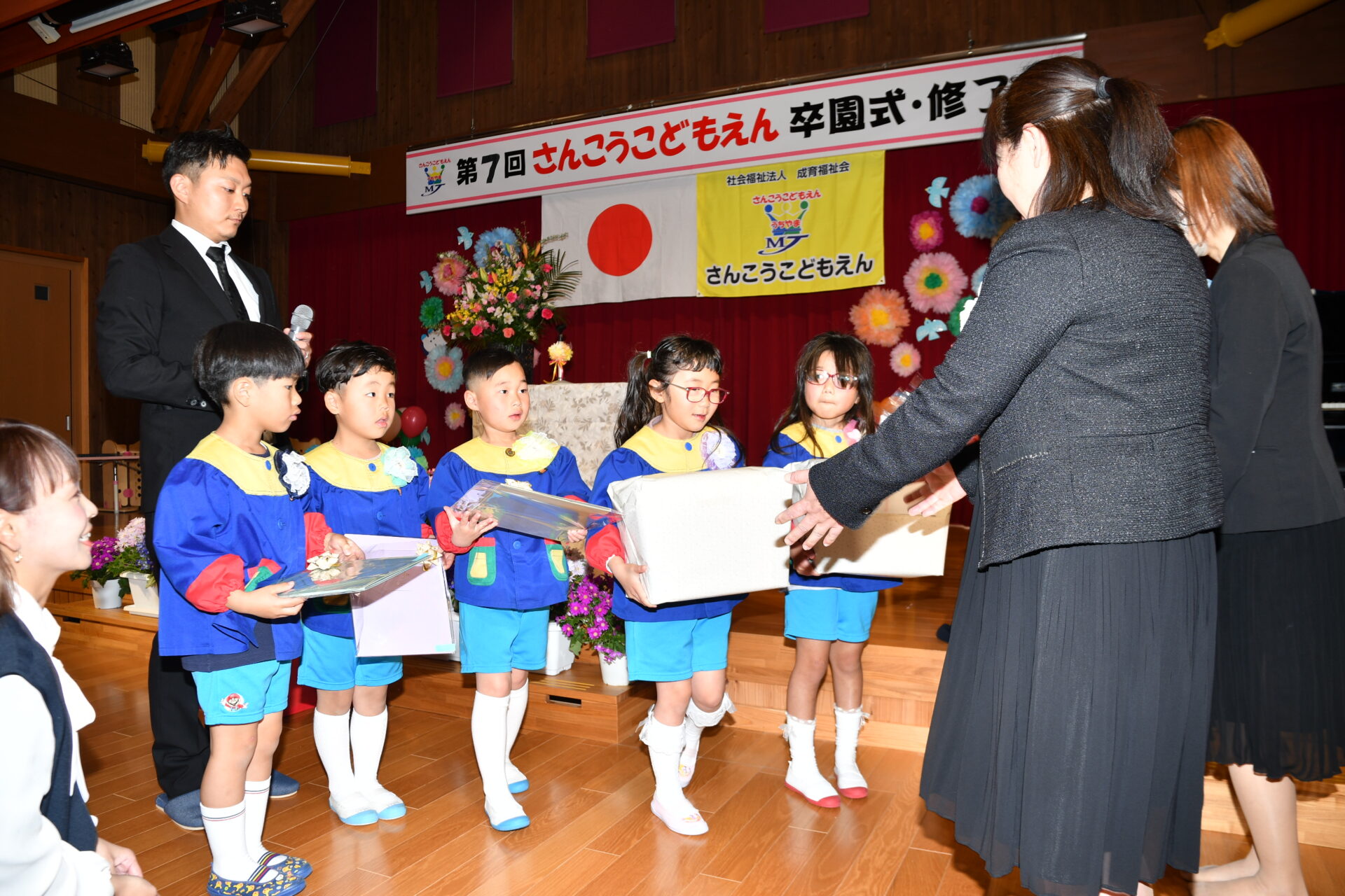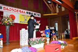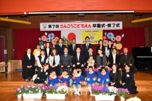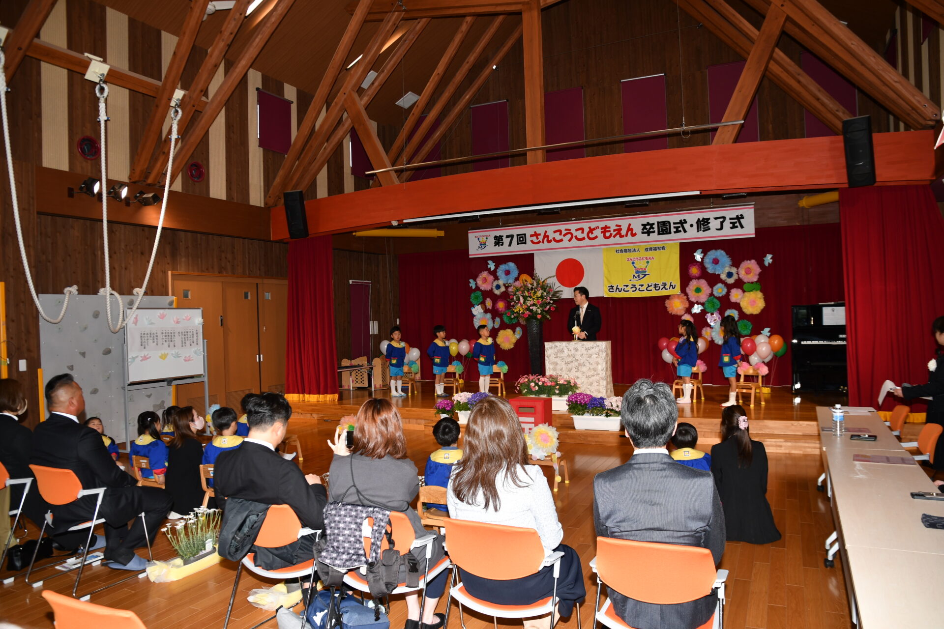 企業型立地保育園 さんこうこどもえん2023年度第7回卒園式が3月23日、宮崎市高岡町の同保育園に於いて開催されました。